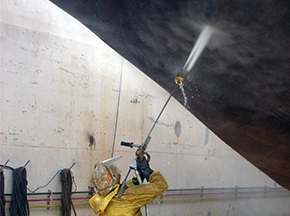 看如何用高壓清洗機(jī)清洗萬噸巨輪