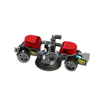 機器人采用四輪驅動,差速轉向,具有小曲率通過能力,可跨越焊縫等障礙,負載能力大,抗風能力強,可以拖拽動力電纜、高壓管、清潔劑箱等爬上超過120米高的風電塔筒;