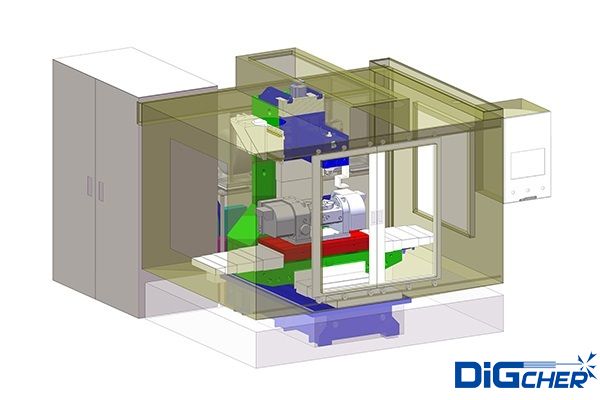 機(jī)床部分:使用BT40通用刀柄作為高壓水噴頭載體,配以自動(dòng)刀庫換刀系統(tǒng)。高精度電腦數(shù)控分度盤提高加工精度和加工效率。