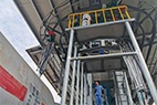 2、三維洗罐器進(jìn)給機(jī)構(gòu)是實(shí)現(xiàn)高壓清洗機(jī)與罐車口的精準(zhǔn)對位,由對位機(jī)構(gòu)和內(nèi)架、外架等組成,配有電機(jī)功率4 Kw的油站。三維洗罐器進(jìn)給機(jī)構(gòu)布置在罐車軌道安全線外,與鐵路線平行;外支架上安裝有液壓絞車,液壓絞車通過鋼絲帶動對位機(jī)構(gòu)上升和下降,對位機(jī)構(gòu)的前端有滑塊與高壓清洗機(jī)連接滑塊可以前后移動,其運(yùn)動方向始終與罐車軸線垂直。起升高度2.35m,提升速度可達(dá)2 m/min。