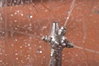德高潔高壓水發(fā)酵罐自動清洗系統(tǒng)是利用高壓水射流的動能將發(fā)酵罐內(nèi)壁表面上的堅硬垢物擊碎,從而剝離并清除掉。具體清洗流程是將特制的三維洗罐器伸縮機構(gòu)安裝在發(fā)酵罐入口上,伸縮桿伸進(jìn)罐內(nèi),伸縮桿在罐內(nèi)伸縮和沿內(nèi)壁周圍方向移動。當(dāng)三維洗罐器水平旋轉(zhuǎn)時,水射流形成的旋轉(zhuǎn)力矩帶動噴嘴在垂直面內(nèi)旋轉(zhuǎn)。由于三維旋轉(zhuǎn)噴頭與伸縮桿的復(fù)合運動,高壓水射流可以覆蓋發(fā)酵罐內(nèi)任何位置,從而完成清洗。