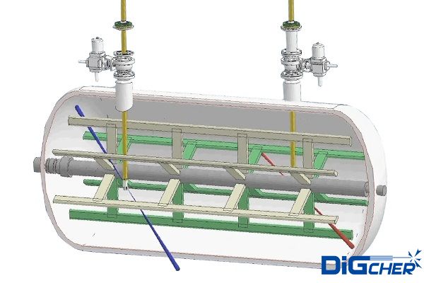 在二氟乙烯單體聚合過(guò)程中,臥式反應(yīng)釜比立式反應(yīng)釜具有更快的反應(yīng)速率,同時(shí)樹(shù)脂析出率明顯較低,樹(shù)脂各方面性能均優(yōu)。因此,臥式反應(yīng)釜在聚酯工業(yè)中的應(yīng)用非常多,尤其是最終縮聚反應(yīng)釜。臥式反應(yīng)釜是一種間歇運(yùn)行多室反應(yīng)的化學(xué)反應(yīng)釜設(shè)備,反應(yīng)釜釜體水平放置,攪拌電機(jī)設(shè)置于兩側(cè)封頭橫向放置,通常采用螺帶或螺桿式攪拌器;