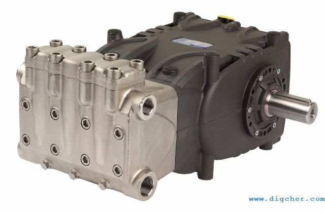 德高潔 DP 1100/28DS 1100bar燃油超高壓清洗機(jī)采用國(guó)際知名品牌康明斯70kw柴油發(fā)動(dòng)機(jī)作為動(dòng)力源;采用三柱塞泵,雙端驅(qū)動(dòng)軸,可以左右選擇,并配有齒輪減速箱。采用飛濺潤(rùn)滑,壓力盤根靠進(jìn)水進(jìn)行冷卻,線性閥組(輸入閥和排出閥在同一直線上)。齒輪箱采用外置式,皮帶傳動(dòng)(傳動(dòng)速度1200rpm)。